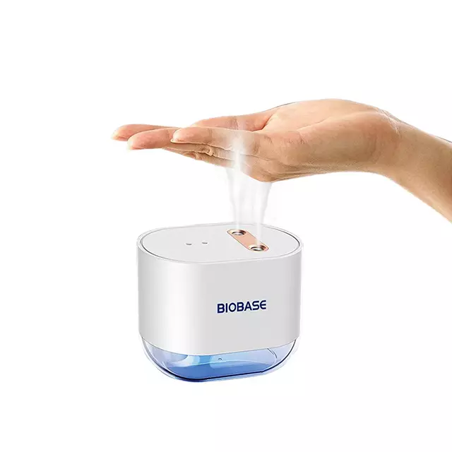 BIOBASE intelligent introduction sterilizer, with infrared sensing double spray function, non-contact liquid. When used, add less than 75% alcohol of volume 4/5, and the sensing distance is 0~12cm. When used, the concentration of alcohol is added below 75%, and the volume of the added liquid is not more than 4/5 of the total volume. Keep away from heat and fire. It is suitable for disinfection of hands and articles.